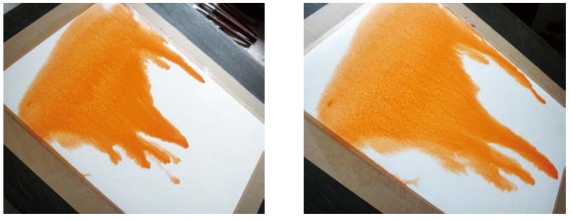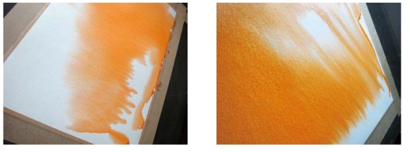 ②依据画面效果的需要,为了掌控颜色的流动,可以随时调整画板倾斜的角度或平放画板。