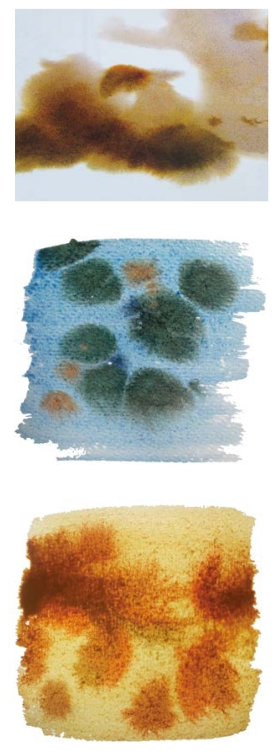 ②画纸或底色湿润的程度,决定了颜色在其上扩散的速度和最终呈现的效果。一般来说,画纸或底色越湿润,画上去的颜色扩散的速度就越快,扩散后出现的色块面积就越大,色块边沿的颜色就比较浅。