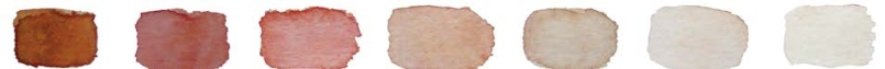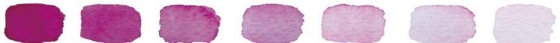 从左至右,随着含水量的逐渐增多,透明感强的玫瑰红色和透明感弱的熟褐色,其明度、透明感不断提高,纯度却随之降低了。