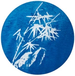 在撕掉留白液的白色纸底上,以晕化法(见第60例)作局部色彩渲染。