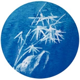 稀释留白液,以画笔蘸上留白液后能保持笔毛的基本形态为宜。将画面上需要留白纸的地方用留白液涂一遍,也可将其滴、弹或溅在画纸上。