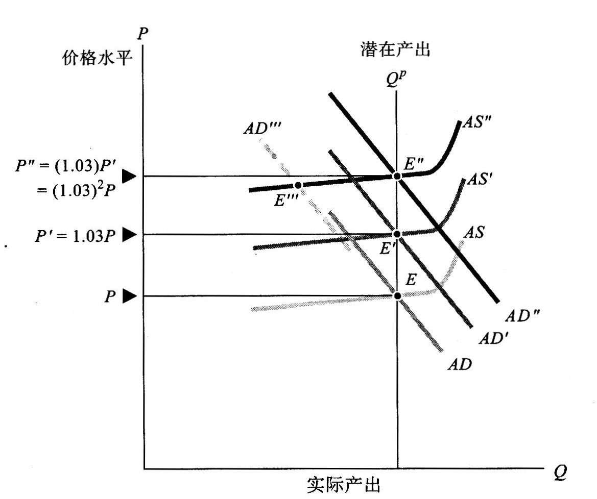 某一既定时期,经济中持续存在的通货膨胀率与人们的期望相适应。这种纳入经济当中的惯性通货膨胀率(inertialrateofinflation)—般持续不变,直至某种冲击使其提高或下降为止。