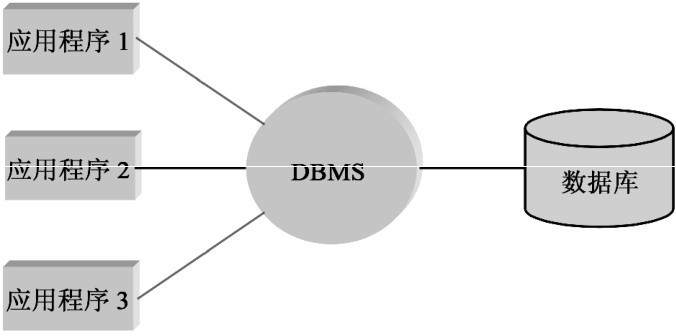 数据库是通用化的相关数据的集合,它不仅包括数据本身,而且包括相关数据之间的联系。数据库中的数据通常是整个信息系统全部数据的汇集,面向所有合法用户,其数据结构独立于数据的程序。数据库的建立、使用和维护等操作由专门的软件系统即DBMS统一进行。该阶段应用程序与数据的关系如图1-4所示。