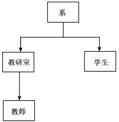 层次模型是用树形结构表示实体间联系的数据模型,是数据库系统中最早出现的数据模型。在这种树形结构中,树是由节点和连线组成的。层次模型通常用于描述家族结构、动植物的分类、行政机构的组织等层次分明的关系。学校中教师学生层次模型如图1-6所示。