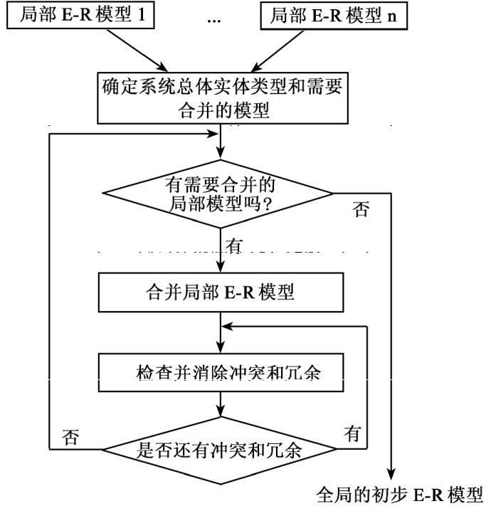 全局E-R模型设计中,要先对比各个子系统的局部E-R模型,再综合成一个系统的全局E-R模型。设计过程如图4-17所示。