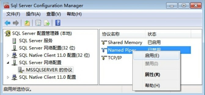 (1) 启用SQL Server实例要侦听的服务器协议。