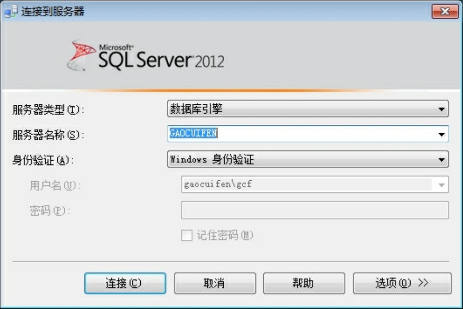 单击“开始”按钮,并依次选择“所有程序→Microsoft SQL Server 2012→SQL Server Management Studio”选项,打开“连接到服务器”对话框,如图7-8所示。