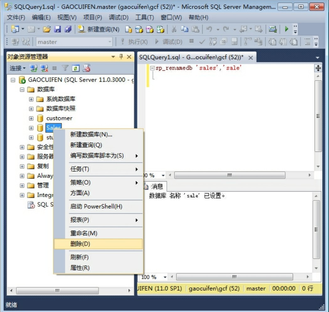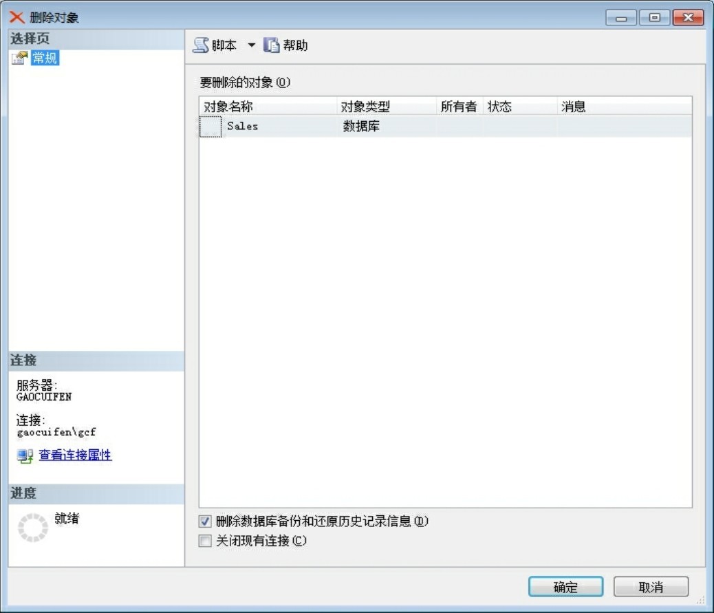 注意:master、model、tempdb数据库不能被任何用户删除。任何参与复制或用户正在使用的数据库也不能被删除,要删除这种数据库,只能到复制结束时或先断开与数据库的连接。