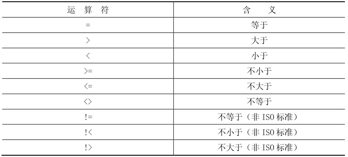 (4) =, >, <, >=, <=, <>, !=, !>, !< 比较运算符