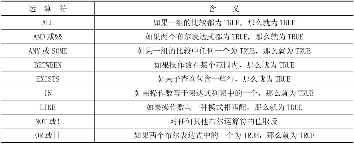 逻辑运算符对某些条件进行测试,以获得其真实情况。逻辑运算符返回带有 TRUE 或FALSE值的布尔数据类型,表9-4列出了所有的逻辑运算符及其含义。