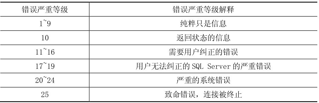 RAISERROR中的参数错误等级信息如表9-5所示。