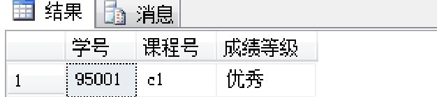 【例9-6】根据查询出的成绩确定学生成绩的等级,输入的成绩应在0到100之间,否则就会提示“成绩输入错误,成绩应在0到100之间”(假设现在要查询95001号学生胡峰的c1课程的成绩等级)。试编写语句。