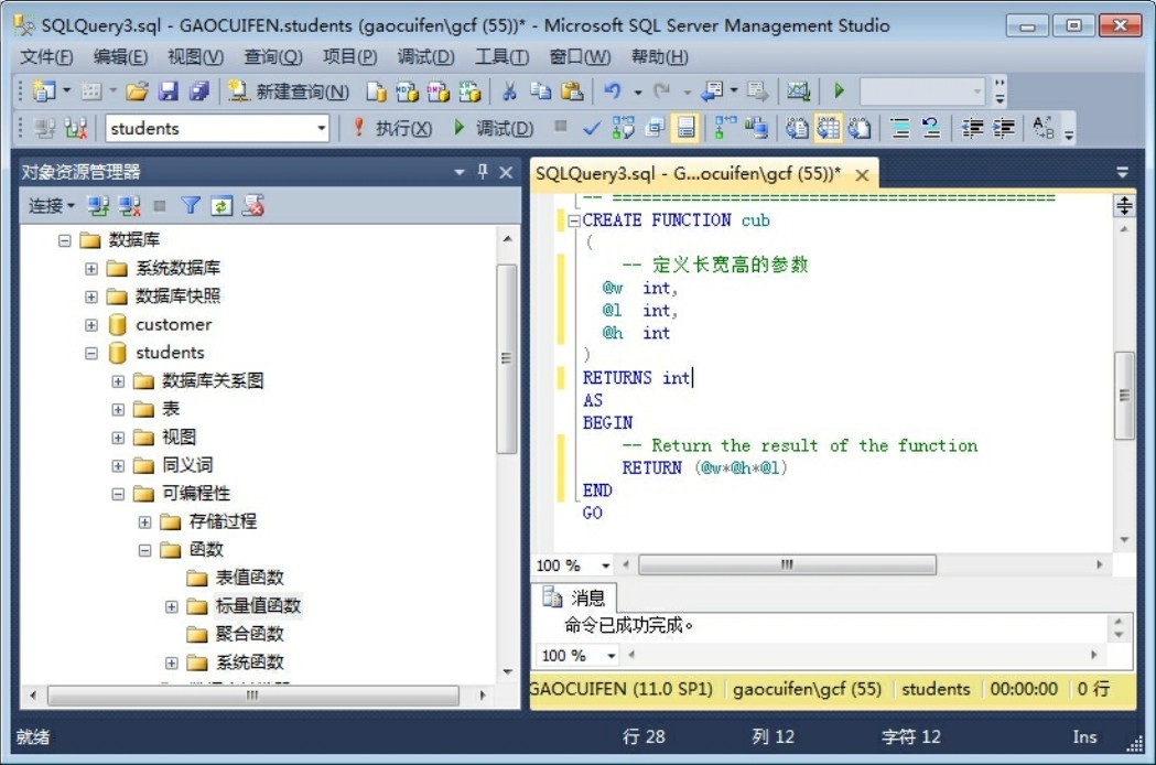 1. 使用SQL Server Management Studio创建和执行用户定义函数