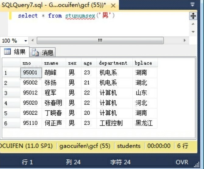 例9-27的调用为select * from stunumsex('男'),具体执行结果如图9-38所示。