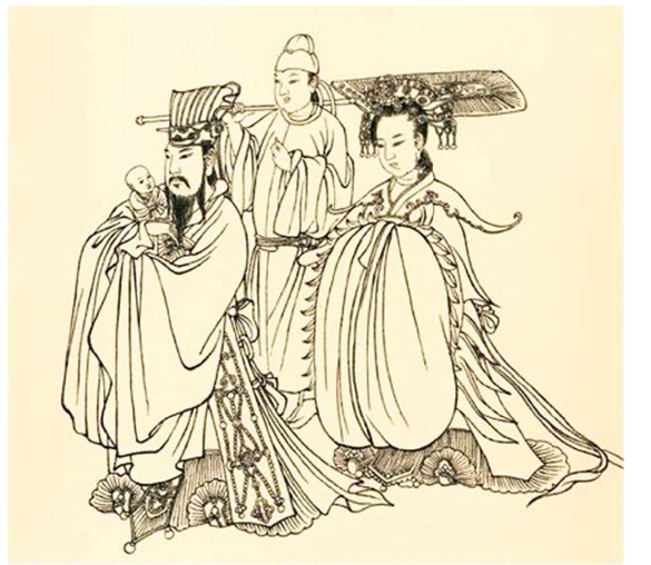 吴道子的《送子天王图》以佛典《瑞应本起经》为题材,描绘佛祖释迦牟尼降生为乔达摩·悉达多王子后,其父净饭王抱着他,携其母摩耶夫人去大自在神庙朝拜时,诸神向他礼拜的情景。
