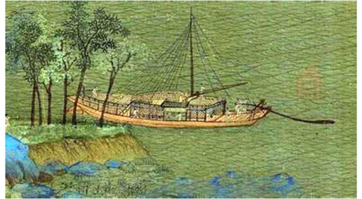 画家在构图上利用了长卷多点透视法,主次分明,变化有致,并将平远、高远、深远合理布置于画面之中,跌宕起伏,富有节奏,使观赏者时而驾舟水上,时而步立山巅,从不同角度领略千里江山的万千姿态,达到了步移景异的艺术效果。图中不仅山、水、桥自然关联,又相对独立,还使渔船、野市等日常劳作场面,与悠然旖旎的景色和谐相融,使作品的生活气息较为浓郁,引人入胜。