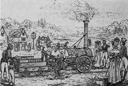 从技术的层面上说,工业革命还包括交通运输的进步。英国在18世纪以前内陆交通极坏,道路基本上是泥尘土路,一下雨就完全不能行走。运输工具是骡车马车,在偏远山区还不乏人挑马驮。英国大部分河流不能通航,内河运输也很糟糕。这些情况导致英国的海上交通比内陆交通发达,海外市场也比国内市场活跃。18世纪初开始出现交通改良,首先是修筑公路,在大石块铺成的路基上撒碎石和沙,再夯筑路面,使其平整坚固,晴雨都可通行。修筑公路的公司可以设立关卡,以此收费盈利,这就刺激了投资的积极性,因此公路发展很快。1760—1774年议会批准了452项筑路申请,到1800年已建成1 600条公路。英国的内陆交通大为改观,19世纪初,从伦敦出发的驿车驶往全国,公路能连接大小城镇。