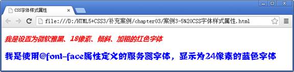 浏览网页时会发现网页中有各式各样的字体,颜色也五颜六色。为了方便地控制网页中的字体,CSS提供了一系列的字体样式属性,主要包括:font-size、font-family、font-weight、font-style、@font-face、word-wrap属性。本案例通过使用以上属性来控制字体的样式,并对比不同的显示效果。