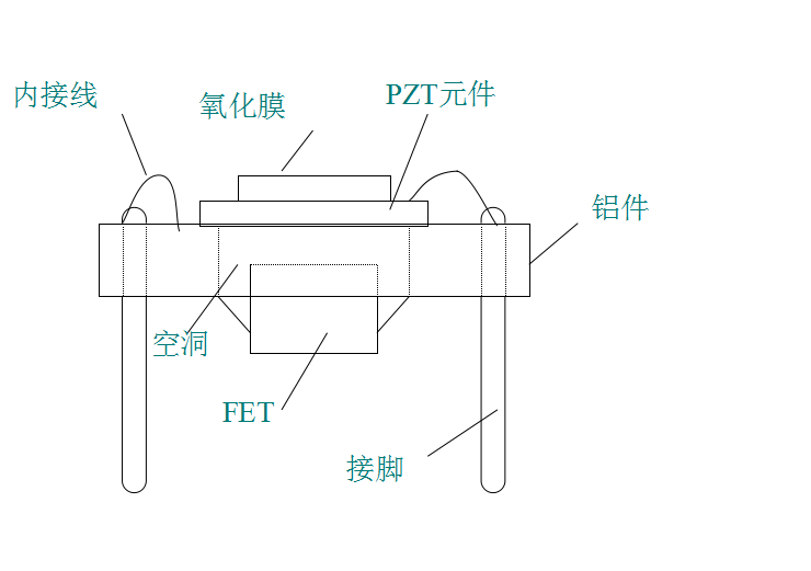 如下图所示。传感器的敏感元件是PZT(钛锆酸铅 ),在上下两面做上电极,并在表面上加一层黑色氧化膜以提高其转换效率。