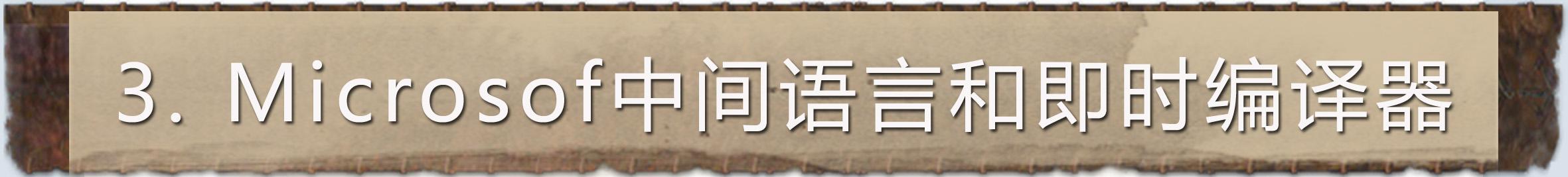 如图1.2所示,.NET框架上的各种语言分别有各自不同的编译器,编译器向CLR提供原始信息,各种编程语言的编译器负责完成编译工作的第一步,即把源代码转换为用Microsoft中间语言(Microsoft Intermediate Language,MSIL)表示的中间代码。MSIL是一种非常接近机器语言的语言,但还不能直接在计算机上运行。第二步编译工作就是将中间代码转换为可执行的本地机器指令(本地代码),在CLR中执行,这个工作由CLR中包含的即时编译器(Just In Time,JIT)完成。