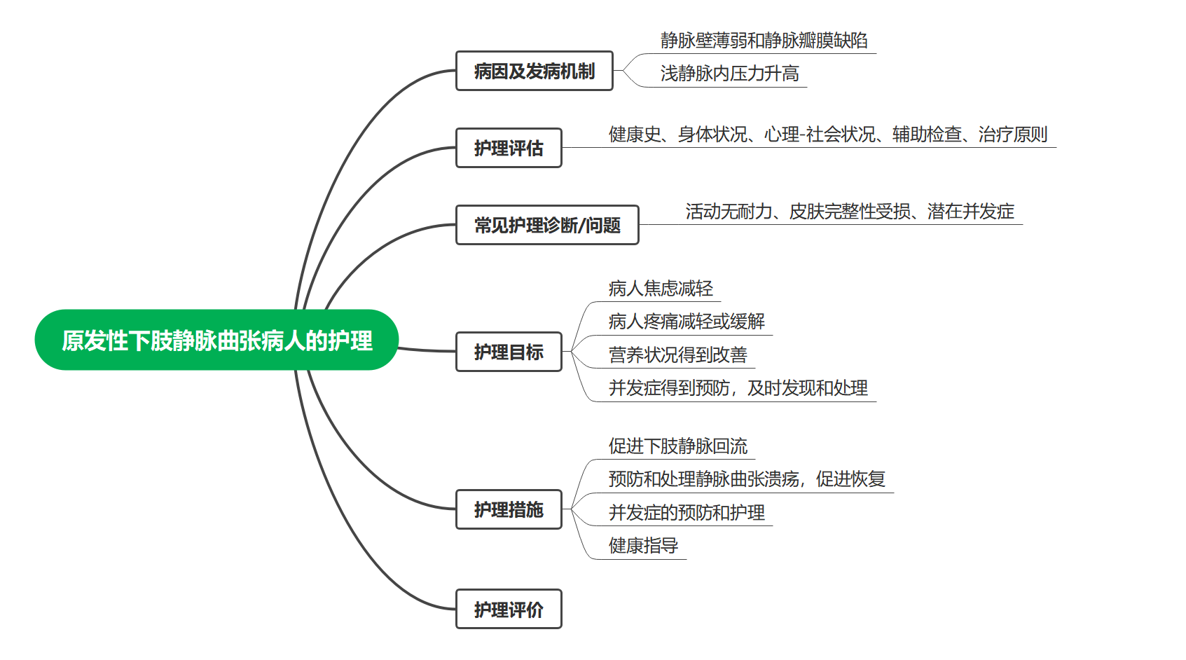 1、掌握原发性下肢静脉曲张病人的身心状况、护理要点